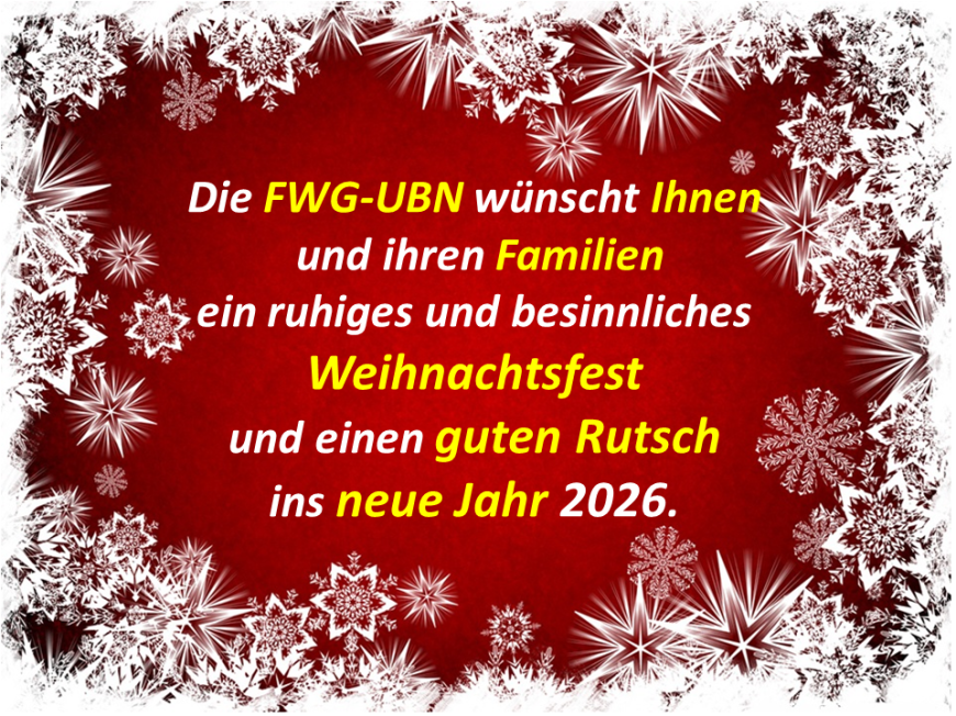 Das kommende Jahr bietet neue Chancen. Chancen für konstruktive Diskussionen, für mutige Entscheidungen und für Projekte, die Neu-Anspach nachhaltig stärken. Die FWG-UBN wird sich weiterhin mit Tatkraft, Augenmaß und Unabhängigkeit für die Belange der Bürgerinnen und Bürger einsetzen. Gemeinsam wollen wir Ideen entwickeln, Verantwortung übernehmen und unsere Stadt Schritt für Schritt voranbringen.